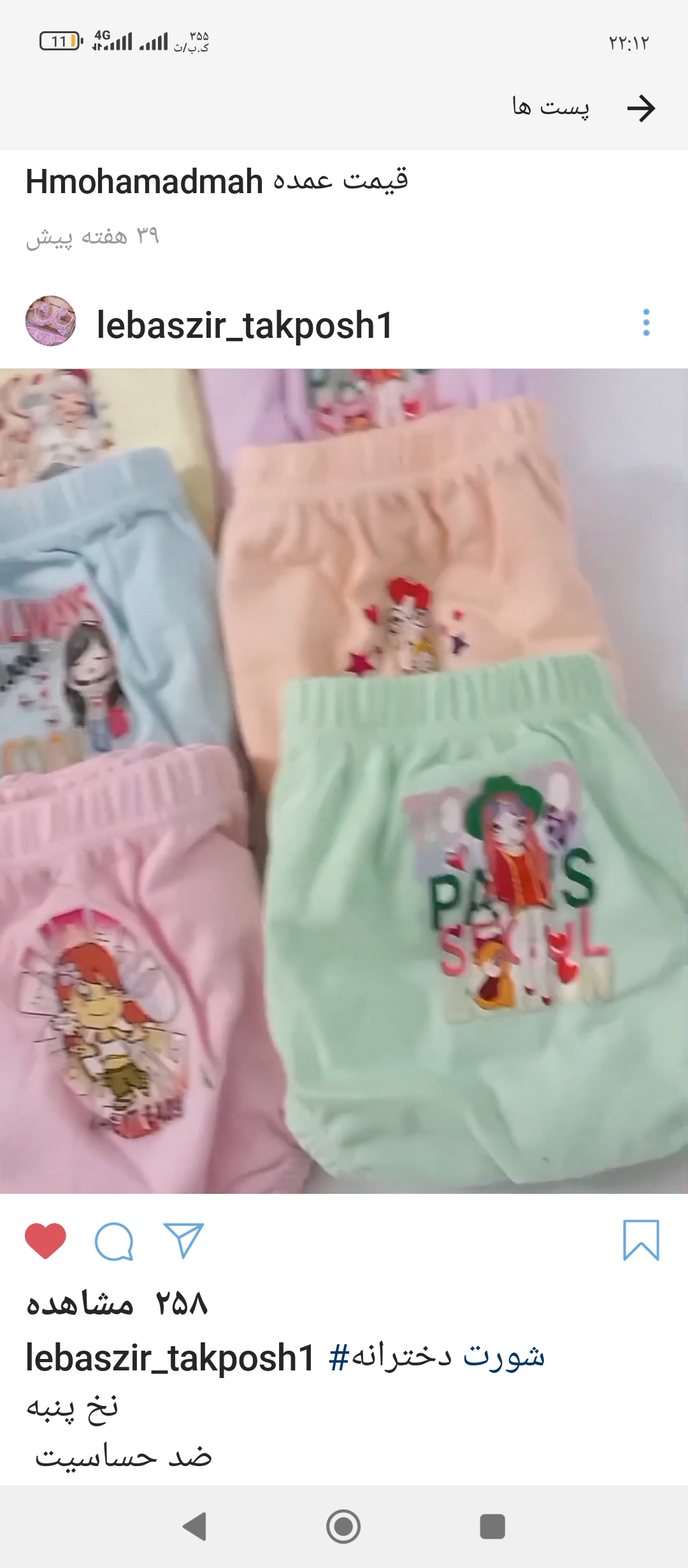 شورت دخترانه نخ پنبه کیفیت عالی ضد حساسیت